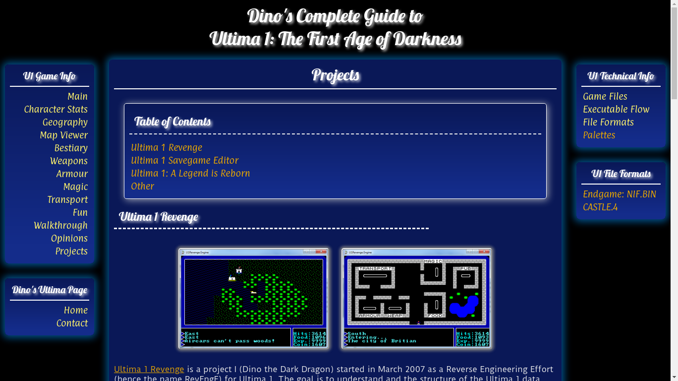 The new Ultima 1 Guide is also the first part of Dino's Ultima Page to adopt a dual navigation system, with left and right navigation.