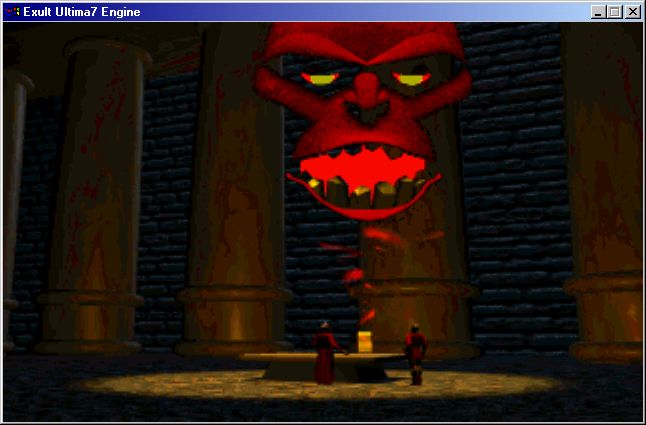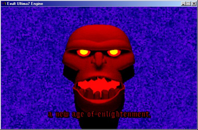 INTRO HISSS JIVE, or by pressing F11 in Exult) where the Guardian is a big red muppetAn interesting thing about the Guardian is that his teeth change more than Castle British! Some people wonder who his dentist is, considering his teeth change from a lump of crystals to a perfect set of teeth. See for yourself: