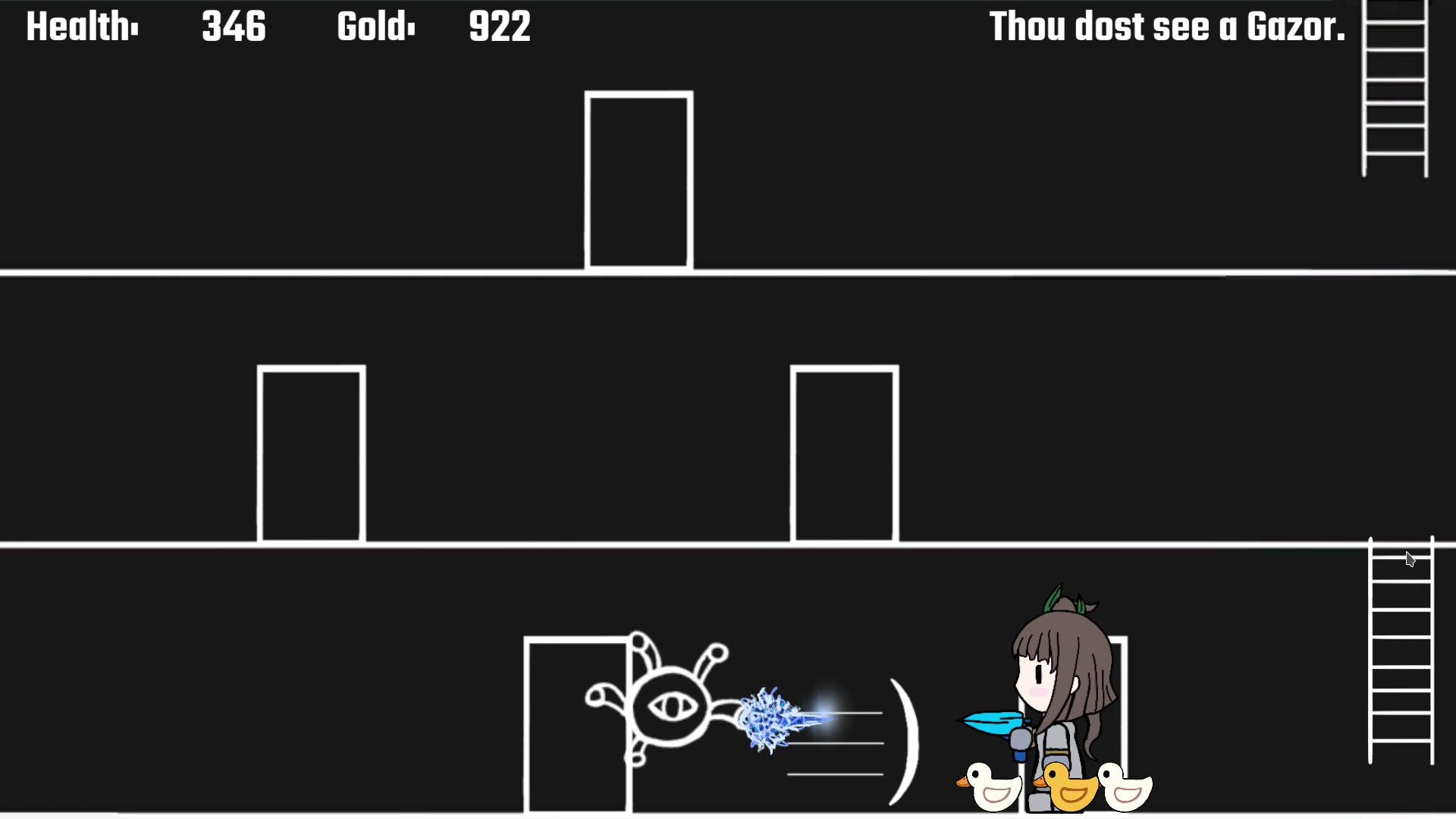The First Age of Duckness is a parody fan game by Yulo Tomorrow. It captures the essence of Ultima 1, with dungeon crawling, space flight, saving princesses, and Mondain, and adds ducks to the mix.