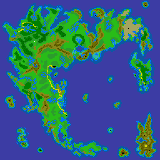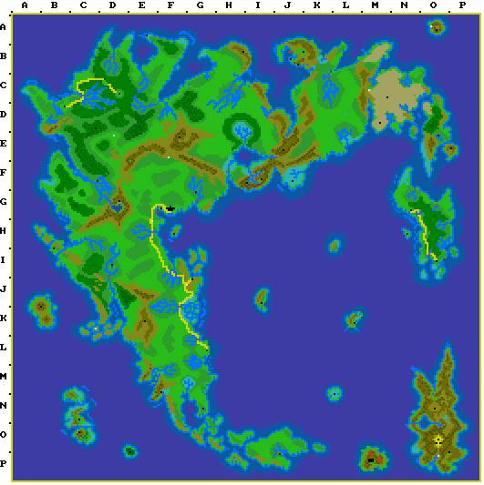 "This map was originally scanned by Trigon Dragon. I've touched up the colors, and have replaced all the original fuzzy runic text with the Ultima Runes true type font. Because of the overwhelming darkness of the whole map, and the stark, contrasting colors, I had to put a white "halo" around the text to make it readable.