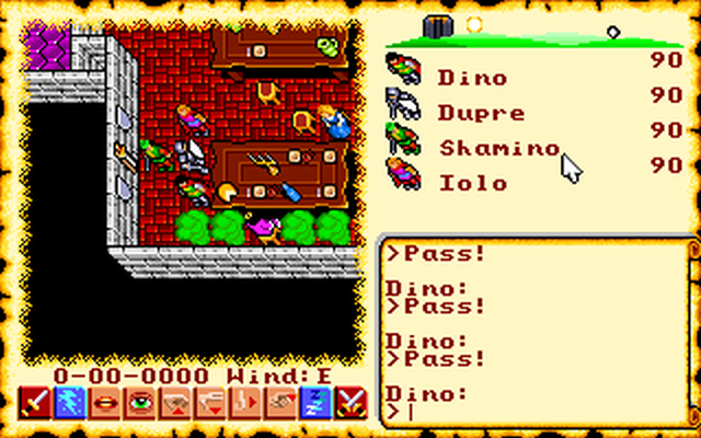 Strong Axe Dragon wrote: "charge a wand with Armageddon; give it to a secondary party member; that member goes into solo mode and uses the wand. This causes everyone but the Avatar to vanish, and a no-longer-existing character has the keyboard focus in solo mode, so time passes, but keyboard and mouse are ignored."