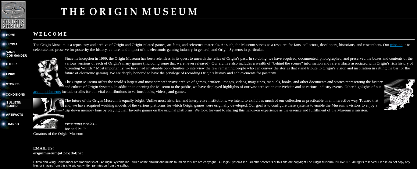 The curators of the Origin Museum have met many of the original Ultima developers, and own many Ultima collectibles and unique artifacts. There were also many stories about the curators' meetings with the Ultima developers and some which concern Ultima lore closely.