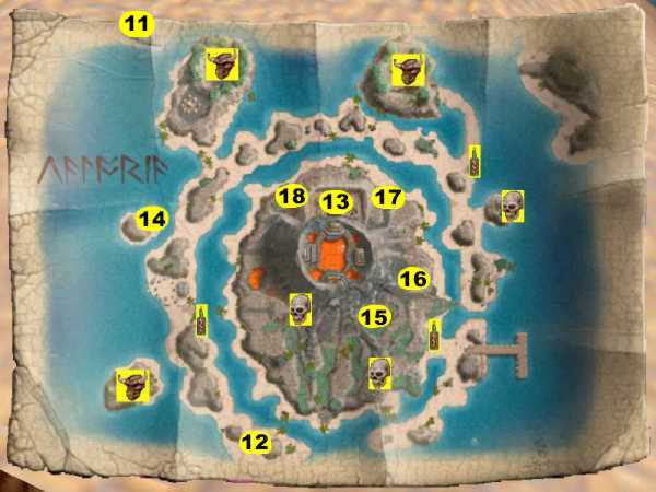 (14) On an islet at 87º27"S, 58º57"W there is a Flaming Sword. Cast Ethereal Sight to see it or x-amine for it.