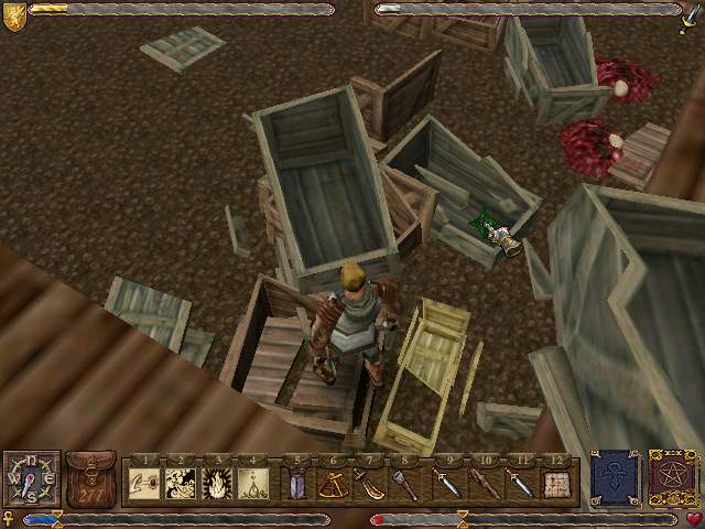 Now, I know what you're thinking. Is this game just about running around breaking crates hopeing to find something useful in all that mess? Oh course not. There is also serious lag, a crappy interface, lame voice acting, and constant crashes. Oh joy. And some annoying bugs, etc.